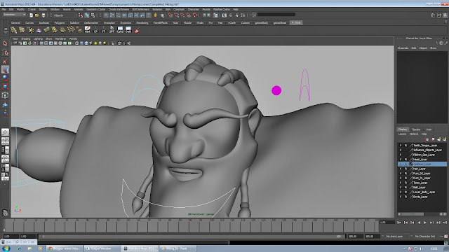 I used joints to rig the eyebrows and blend shapes to add expressions to the face.